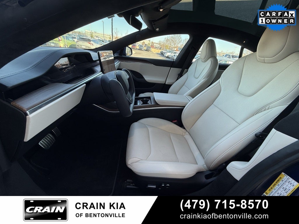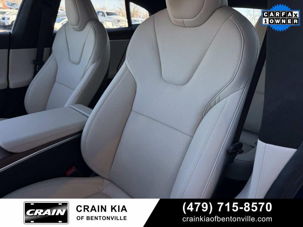 One Owner, 22 Speakers, 4-Wheel Disc Brakes, ABS brakes, Adaptive suspension, Air Conditioning, Alloy wheels, Audio memory, Auto High-beam Headlights, Auto tilt-away steering wheel, Auto-dimming door mirrors, Auto-dimming Rear-View mirror, Auto-leveling suspension, Automatic temperature control, Brake assist, Bumpers: body-color, Compass, Delay-off headlights, Driver door bin, Driver vanity mirror, Dual front impact airbags, Dual front side impact airbags, Electronic Stability Control, Emergency communication system, Enhanced Autopilot, Exterior Parking Camera Rear, Four wheel independent suspension, Front anti-roll bar, Front Bucket Seats, Front Center Armrest, Front dual zone A/C, Front fog lights, Front reading lights, Full Self-Driving Capability, Fully automatic headlights, Garage door transmitter: Homelink, Genuine wood console insert, Genuine wood dashboard insert, Genuine wood door panel insert, Heated & Ventilated Front Bucket Seats, Heated door mirrors, Heated front seats, Heated rear seats, Heated steering wheel, HVAC memory, Illuminated entry, Knee airbag, Lane Departure Warning System, Leather steering wheel, Low tire pressure warning, Memory seat, Navigation System, Occupant sensing airbag, Outside temperature display, Overhead airbag, Passenger door bin, Passenger vanity mirror, Power door mirrors, Power driver seat, Power Liftgate, Power passenger seat, Power steering, Power windows, Premium Audio System, Premium Seat Trim, Radio data system, Rain sensing wipers, Rear air conditioning, Rear anti-roll bar, Rear audio controls, Rear reading lights, Rear seat center armrest, Rear window defroster, Remote keyless entry, Security system, Speed control, Speed-sensing steering, Speed-Sensitive Wipers, Split folding rear seat, Spoiler, Steering wheel memory, Steering wheel mounted A/C controls, Steering wheel mounted audio controls, Telescoping steering wheel, Tilt steering wheel, Traction control, Trip computer, Variably intermittent wipers, Ventilated front seats, Wheels: 19 Tempest, Yoke Steering Wheel.
