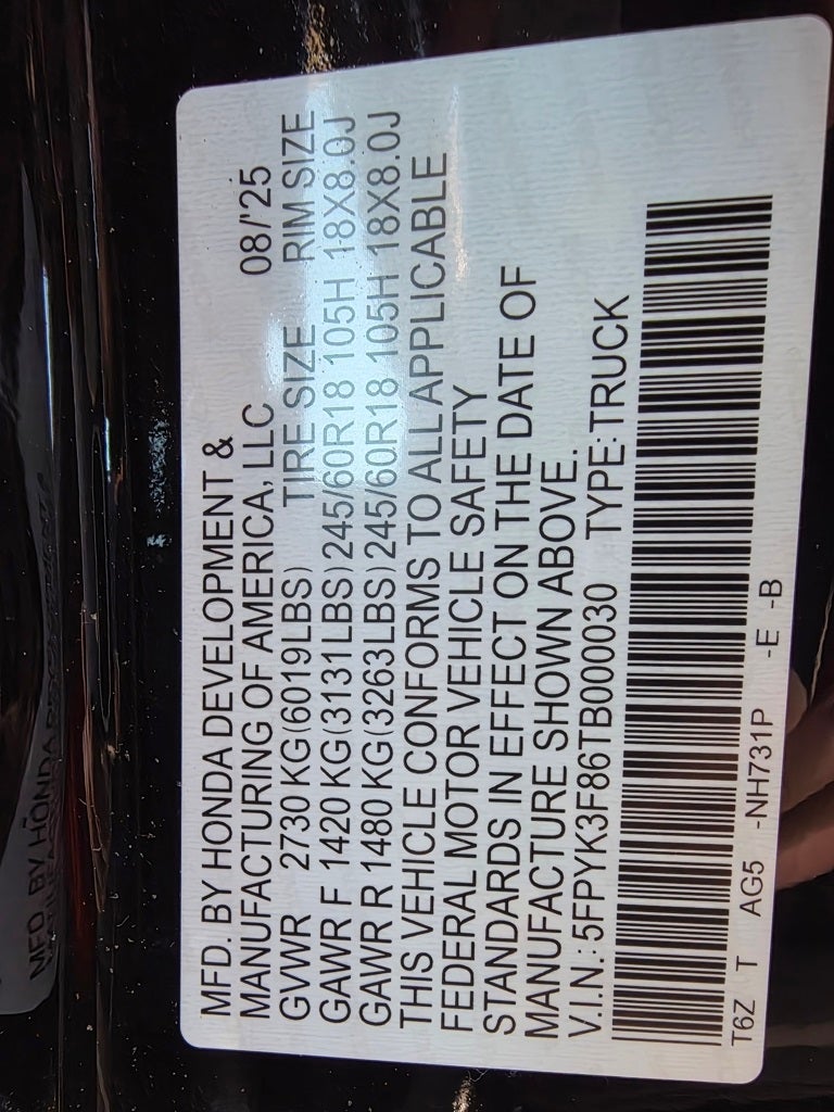 - Vehicle Name: Honda Ridgeline